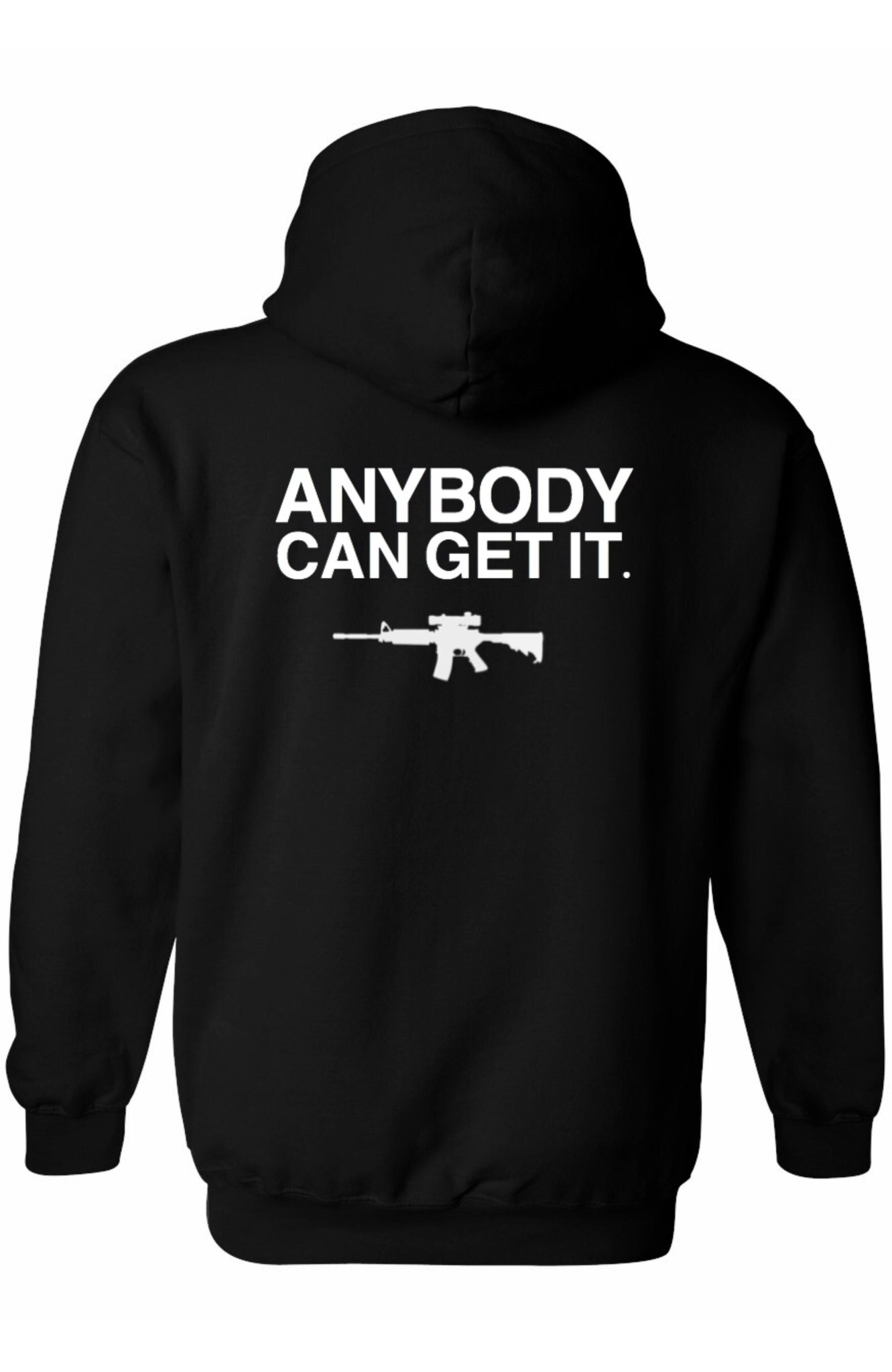 Men's hoodie with minimal text on front and rear. Gildan Heavy, 50% cotton, 50% polyester. Machine wash cold. Runs true to size.